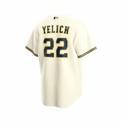 Best deal 👏 Nike Men’s Christian Yelich Cream Milwaukee Brewers Alternate Replica Player Jersey 🔔