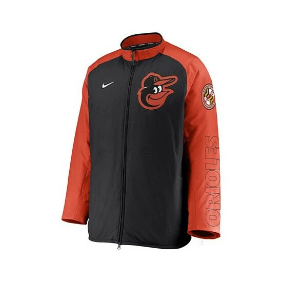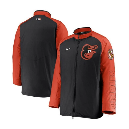 Maintain your status as the ultimate Baltimore Orioles fan through the winter months with this Authentic Collection Dugout full-zip jacket from Nike. The elastic cords at the waist and cuffs keep warmth inside so that you can maintain your comfort, and the stellar Baltimore Orioles-inspired design on the exterior is just what you need to proclaim your allegiance to your squad.
