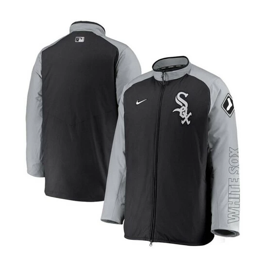 Maintain your status as the ultimate Chicago White Sox fan through the winter months with this Authentic Collection Dugout full-zip jacket from Nike. The elastic cords at the waist and cuffs keep warmth inside so that you can maintain your comfort, and the stellar Chicago White Sox-inspired design on the exterior is just what you need to proclaim your allegiance to your squad.