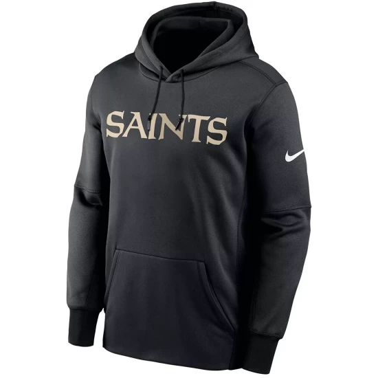 Take on chilly temperatures with your favorite pro football team keeping your spirits warmed up. This Fan Gear Wordmark pullover hoodie from Nike features flexible material for better movement and large New Orleans Saints graphics on the front for all to see. Plus, Nike Therma fabric helps you harness your own body’s warmth, while Dri-FIT technology removes moisture for all-around comfort at the New Orleans Saints stadium.