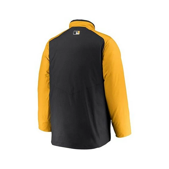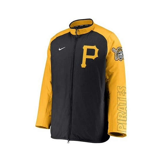 Maintain your status as the ultimate Pittsburgh Pirates fan through the winter months with this Authentic Collection Dugout full-zip jacket from Nike. The elastic cords at the waist and cuffs keep warmth inside so that you can maintain your comfort, and the stellar Pittsburgh Pirates-inspired design on the exterior is just what you need to proclaim your allegiance to your squad.