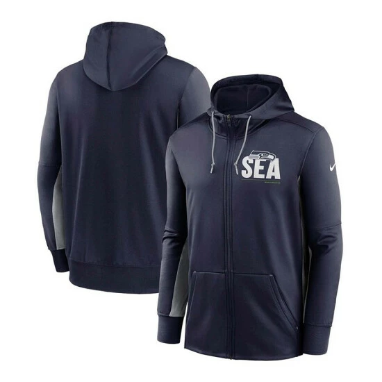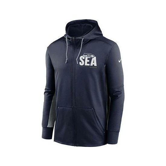 Take on cold days in Seattle Seahawks style with this Mascot full-zip hoodie. This Nike jacket features Therma fabric and Dri-FIT technology for all-day comfort. The graphics on the chest feature the Seattle Seahawks logo and home initials, giving this gear a standout look.