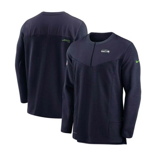This sleek Sideline jacket from Nike is the same extra layer you might see your favorite Seattle Seahawks players and coaches wear. It features a half-zip closure and is designed with Dry fabric with Dri-FIT technology to ensure elite comfort when you need some extra coverage. Complete with UV protective qualities, this jacket is a must-have for any dedicated Seattle Seahawks supporter.