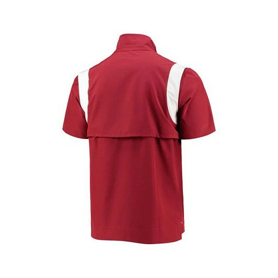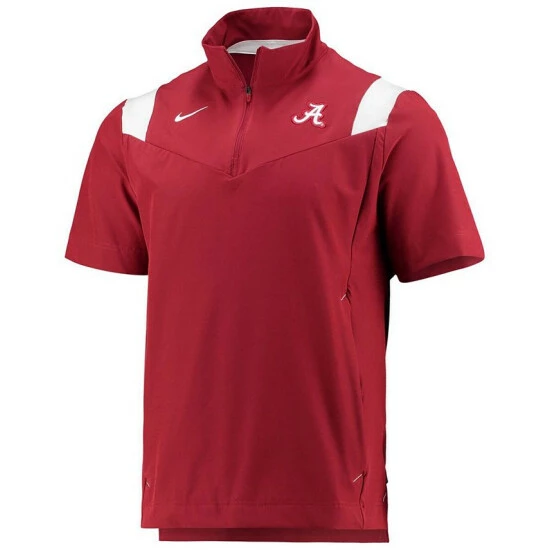 This Alabama Crimson Tide Coach quarter-zip jacket from Nike is the perfect outer layer for warmer days. It features a ventilated back with mesh lining to promote breathability and keep you cool. There is a mesh pocket on the front with hidden zippers to help keep valuables safe and secure. Not to mention it’s decked out in team colors with an embroidered Alabama Crimson Tide logo for some added flair on game day.