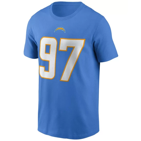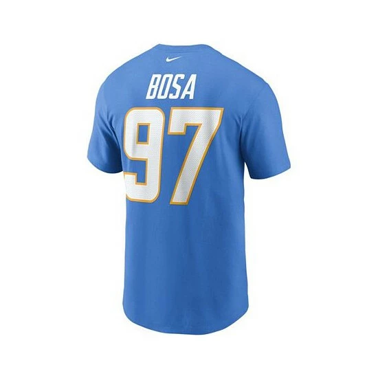Joey Bosa is your favorite player, and for a good reason. Show him your support by grabbing this Los Angeles Chargers Name and Number T-shirt from Nike. It features bold Los Angeles Chargers and Joey Bosa graphics, so no one will be able to question where your allegiance lies when you rock this sweet gear.