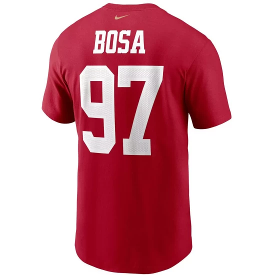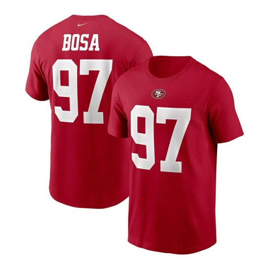 Nick Bosa is your favorite player, and for a good reason. Show him your support by grabbing this San Francisco 49ers name and number T-shirt from Nike. It features bold San Francisco 49ers and Nick Bosa graphics, so no one will be able to question where your allegiance lies when you rock this sweet gear.
