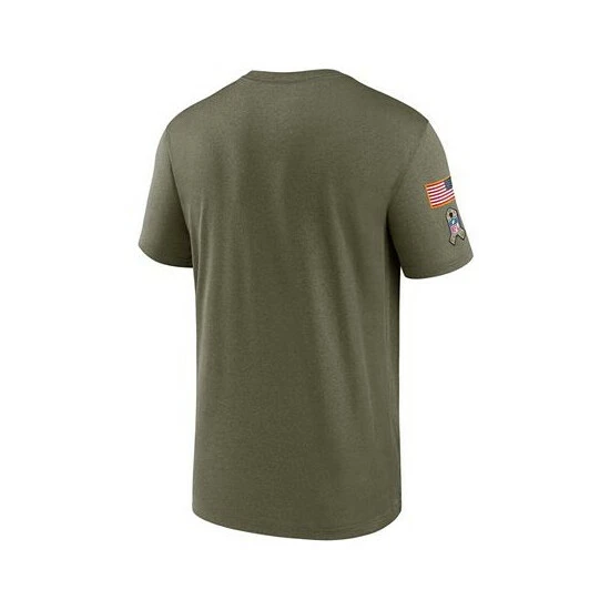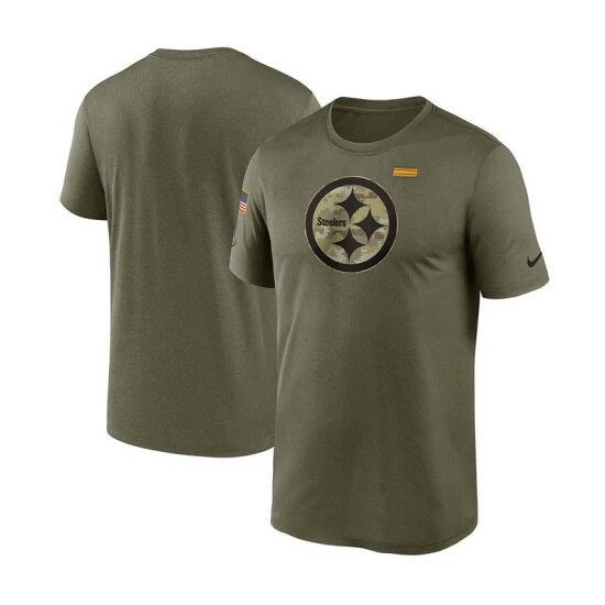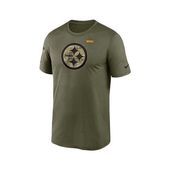 Honor our service members while supporting the Pittsburgh Steelers with this Salute To Service Legend Performance T-Shirt. This Nike top features a military-inspired color scheme, complete with the American flag and Salute To Service ribbon graphics. The Dri-FIT performance technology is designed to wick away moisture, leaving you comfortable all game long. The NFL does not profit from the sale of Salute to Service products. Charitable contributions are awarded by the NFL Foundation to the NFL’s military-inspired nonprofit partners. For more information, please visit www.NFL.com/causes/salute.