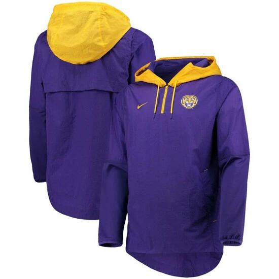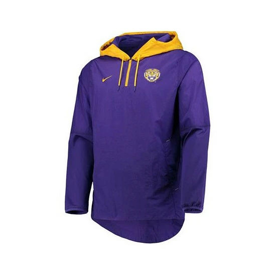 When you have this Nike Player Jacket, a cloudy sky is no reason to cancel your training day. Crafted from water-resistant nylon, this quarter-zip jacket is designed to keep you dry without weighing you down with extra layers. Plus, it comes complete with crisp LSU Tigers graphics, giving your workout a bit of team-inspired pep.
