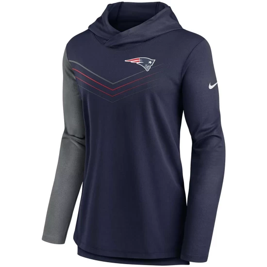 Add a touch of team spirit to any look with this New England Patriots hoodie T-shirt. This Nike top features a striking chevron pattern on the front and a contrast-color right sleeve. Cheer on the New England Patriots in style and comfort thanks to the Dri-FIT technology in this tee.