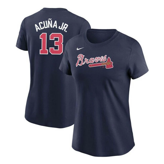 Before Ronald Acuna Jr. and the Atlanta Braves step on the field for the next game, gear up in this Name and Number T-shirt from Nike. Its lightweight cotton fabric is breathable and comfortable, perfect for the midsummer heat of baseball season. Both the front and back are decked out in detailed graphics that will highlight your admiration of one of the game’s best.